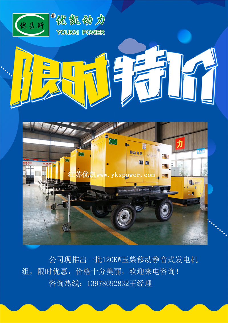 為感謝廣大客戶的支持,南寧優(yōu)凱動力機(jī)電設(shè)備有限公司現(xiàn)推出一批120kw玉柴移動靜音發(fā)電機(jī)組,限時特惠,歡迎新老客戶來電咨詢訂購!