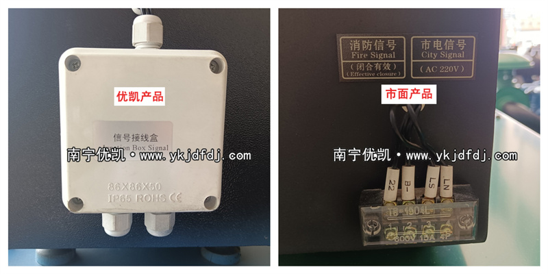 優(yōu)凱動力生產的柴油發(fā)電機組配置自啟動控制系統(tǒng),液晶顯示屏側邊的市電信號優(yōu)凱動力做了升級優(yōu)化,加了保護罩,防雨防曬,進一步保護接線頭,增加安全性,防止漏電。